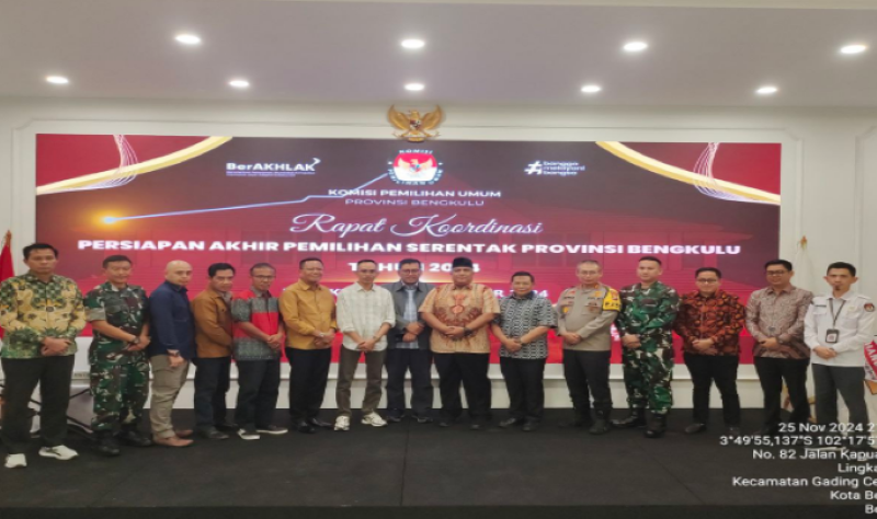 Worldosint.com – Komisi Pemilihan Umum KPU Provinsi Bengkulu beserta Ketua Tim pemenangan Paslon Gubernur baik nomer urut satu dan dua melaksanakan kegiatan Rapat Koordinasi Persiapan Akhir Pemilihan Serentak Provinsi Bengkulu.